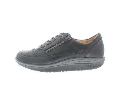 Ganter dames afwikkel veterschoen, model Gisa uit de Aktiv lijn, zwart leer, plantaardig gelooide kalfsleren binnenvoering en rits voor het instap gemak, wijdte G, geschikt voor de normale voet, afrolmechanisme in de zool voor het makkelijke afwikkelen en neutrale rugpositie, ideaal bij morton, versleten middenvoetsbeen -kopjes en hielspoor, uitneembaar voetbed.