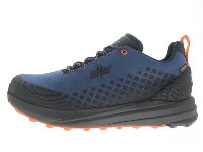 Lomer heren wandelschoen van extreem lichte materialen, model Gravity MTX. Deze schoen heeft een dikke Vibram phylon zool met een enorme demping. De slijtzool heeft een ‘road to trail’ profiel en is geschikt voor algemene en trail wandelingen. Mer-Tex waterdicht, zodat je kan wandelen zonder natte voeten te krijgen. Uitgevoerd in het blauw met oranje details. Vervaardigd van uitsluitend synthetische materialen. Valt als een wijdte H, geschikt voor de iets bredere voet, of normale voet die meer comfort wil. Uitneembaar voetbed. Dit model is universeel, gemaakt tussen een gemiddelde dames en herenmaat.