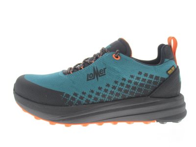 Lomer dames wandelschoen van extreem lichte materialen, model Gravity MTX. Deze schoen heeft een dikke Vibram phylon zool met een enorme demping. De slijtzool heeft een ‘road to trail’ profiel en is geschikt voor algemene en trail wandelingen. Mer-Tex waterdicht, zodat je kan wandelen zonder natte voeten te krijgen. Uitgevoerd in petrol groen met oranje details. Vervaardigd van uitsluitend synthetische materialen. Valt als een wijdte H, geschikt voor de iets bredere voet, of normale voet die meer comfort wil. Uitneembaar voetbed. Dit model is universeel, gemaakt tussen een gemiddelde dames en herenmaat.