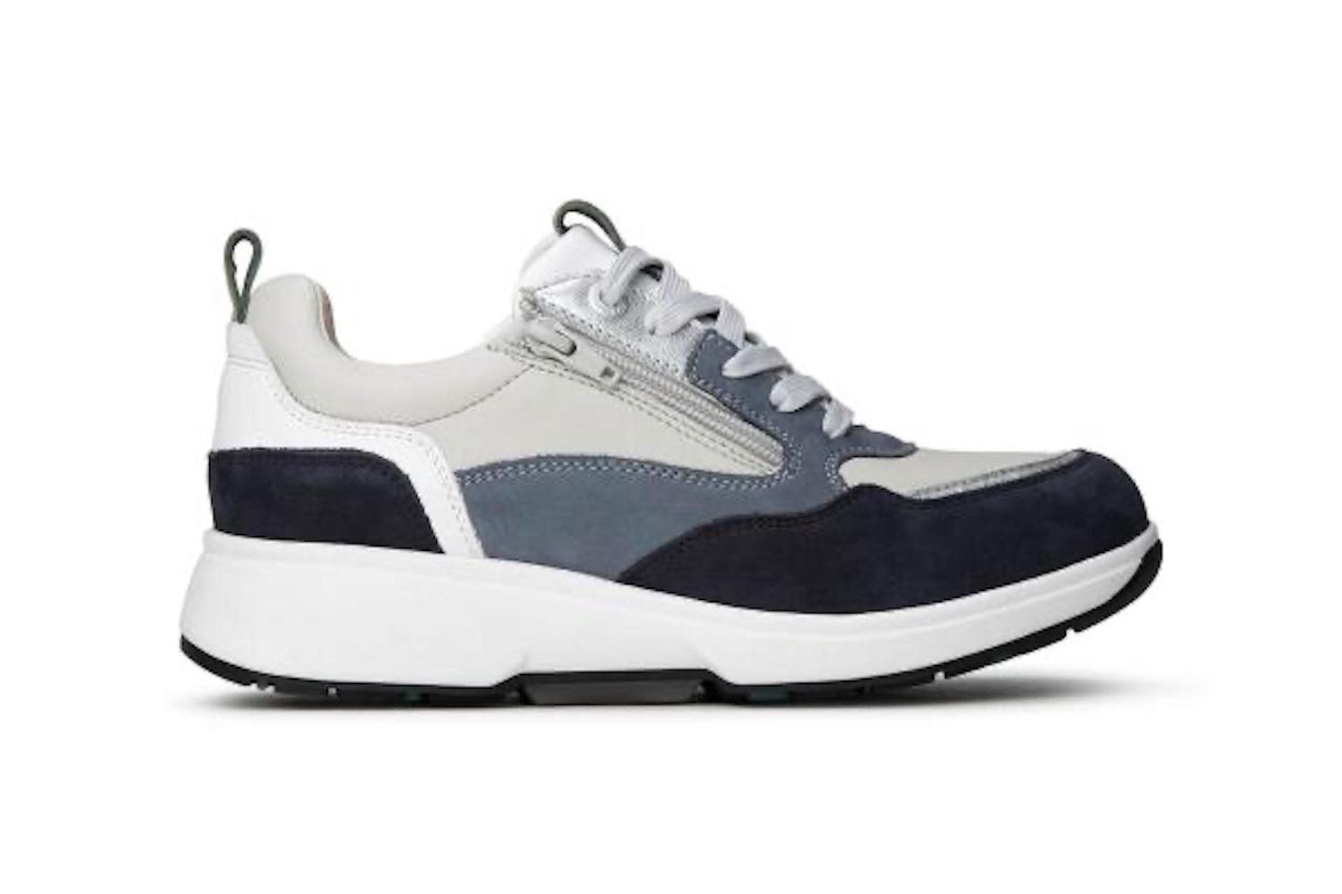Xsensible dames sneaker, model Grenoble. Bestaat uit gecombineerde materialen, waaronder suède en neopreen (stretch) met blauwe hoofdtonen. Stretchwalker onderwerk met antislipprofiel en enorm schokabsorberende kwaliteiten. Wijdte H, geschikt voor de iets bredere voet. Uitneembaar voetbed. Hakhoogte 45mm. Hielheffing 25mm.