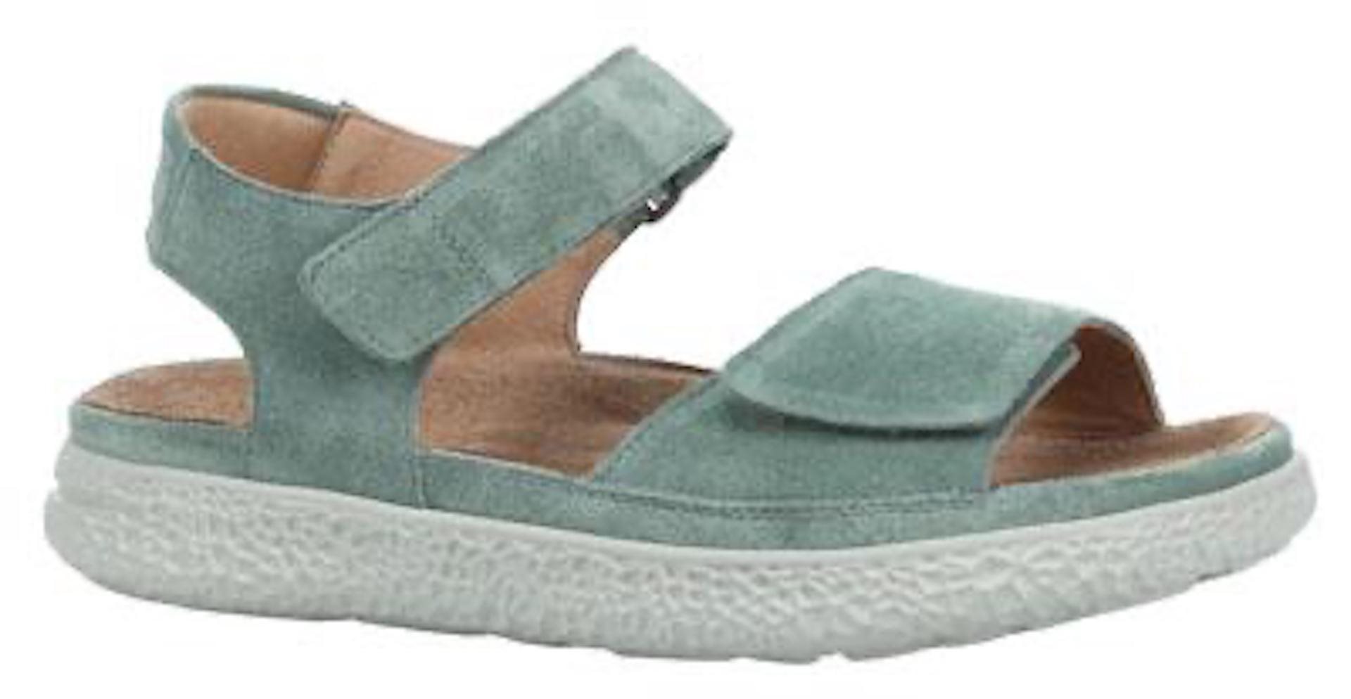 Hartjes dames sandaal, model Groove uit de Natural lijn die volledig ecologisch en chroomvrij geproduceerd is voor het welzijn van mens en milieu, klittenbandsluiting op de voorvoet en rond de wreef met een passant, plantaardig gelooid nubuck leer in een groene kleur, slijtvaste XL -EXTRALIGHT- Sustainable+ loopzool die deels gemaakt is van gerecyclede componenten en de voeten een heerlijke demping geeft. Wijdte H, geschikt voor de normale voet. Anatomisch gevormde voetbed met kurk en een suède toplaag voor een heerlijk gevoel en hoge vochtopname.