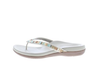 Deze fraaie slipper van Aetrex is gemaakt met een afwikkeling in de zool verlicht bij onder andere hielspoorklachten. Ook hebben de slippers een anti pronatie blok wat ervoor zorgt dat de enkels niet naar binnen knikken. Hiermee verlicht je o.a de knieen, heupen en rug.Deze mooie slipper is in een multi color gemaakt.