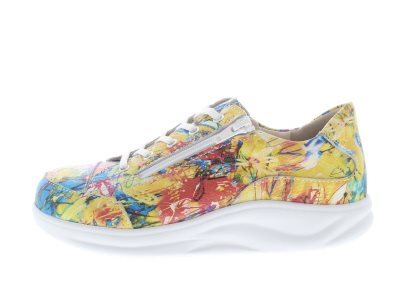Finn Comfort dames veterschoen, model Hachiouji uit de Finnamic afwikkel lijn. Schoenen uit deze lijn zijn zeer geschikt bij het ontlasten en verlichten van hiel en voorvoet gerelateerde klachten, en zorgt tevens voor een rechtere rug houding en ondersteuning bij rugklachten. Multicolor leer. Rits voor het instapgemak en een gepolsterde tong voor extra comfort op de wreef. Valt als een wijdte H, geschikt voor de bredere voet. Uitneembaar ecologisch en anatomisch gevormde voetbed.