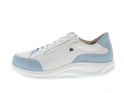 Finn Comfort dames veterschoen, model Hachiouji uit de Finnamic afwikkel lijn. Schoenen uit deze lijn zijn zeer geschikt bij het ontlasten en verlichten van hiel en voorvoet gerelateerde klachten, en zorgt tevens voor een rechtere rug houding en ondersteuning bij rugklachten. Wit leer met nubuck details. Rits voor het instapgemak en een gepolsterde tong voor extra comfort op de wreef. Valt als een wijdte H, geschikt voor de bredere voet. Uitneembaar ecologisch en anatomisch gevormde voetbed.