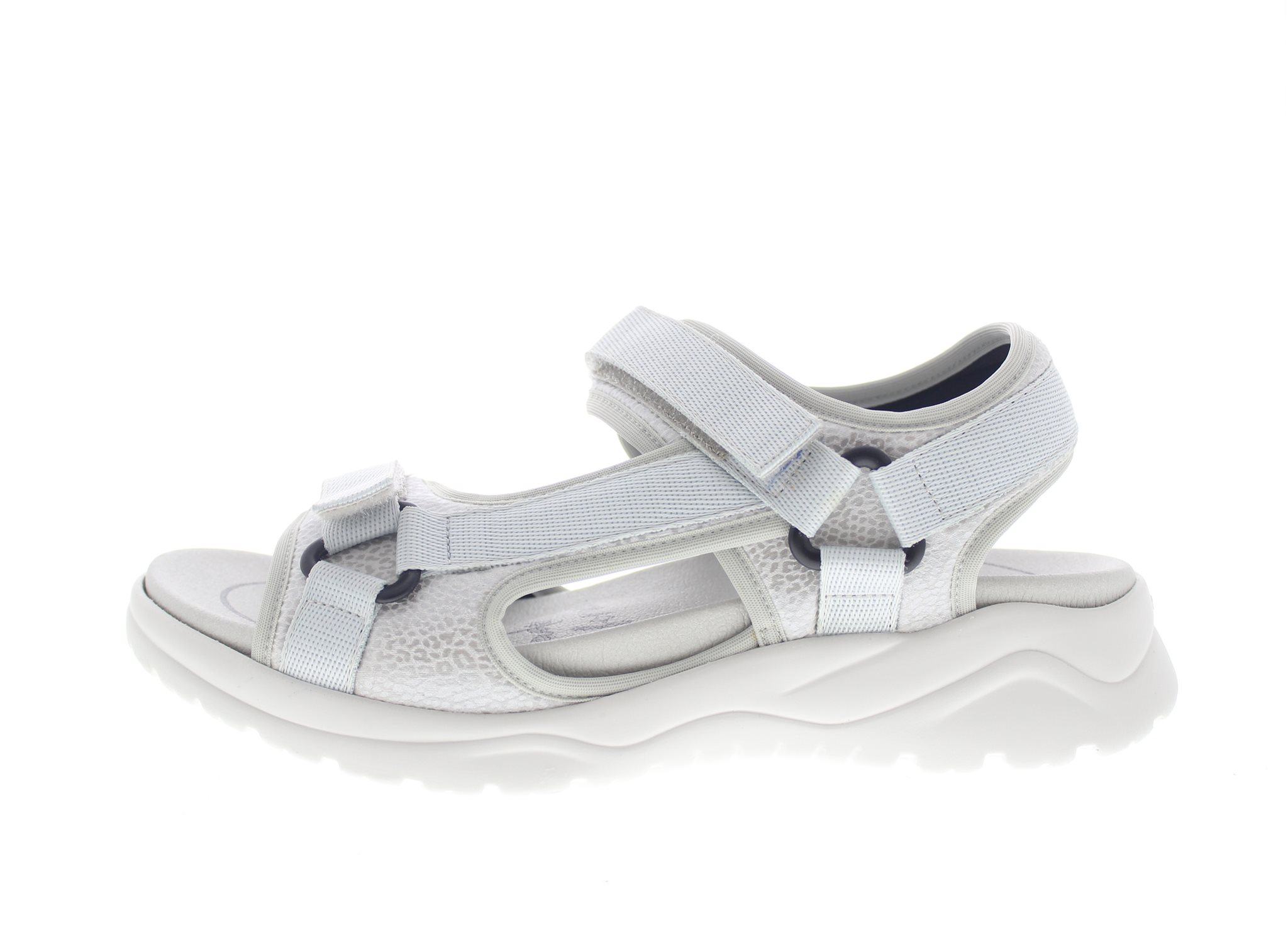 Solidus sportieve dames sandaal, model Haika, de musthave voor outdoor fans. Maximale stabiliteit op effen en oneffen oppervlakten en grip bij regen door de PU verendere loopzool, die ook een vloeiende afwikkeling garandeert. Uitneembare kurk-PU-voetbed met een antibacteriële toplaag van ademend materiaal, dat eventueel onder de kraan met baking soda gereinigd kan worden, terwijl de sandalen zelfs wasmachine wasbaar zijn op 30°. Gemaakt op een wijdte H dat zich leent aan een iets bredere voet, met klittenband verstelbare sluitingen voor de gewenste fit. Uitgevoerd in een grijze kleur van synthetisch ademende sportmaterialen. Uitneembaar voetbed.