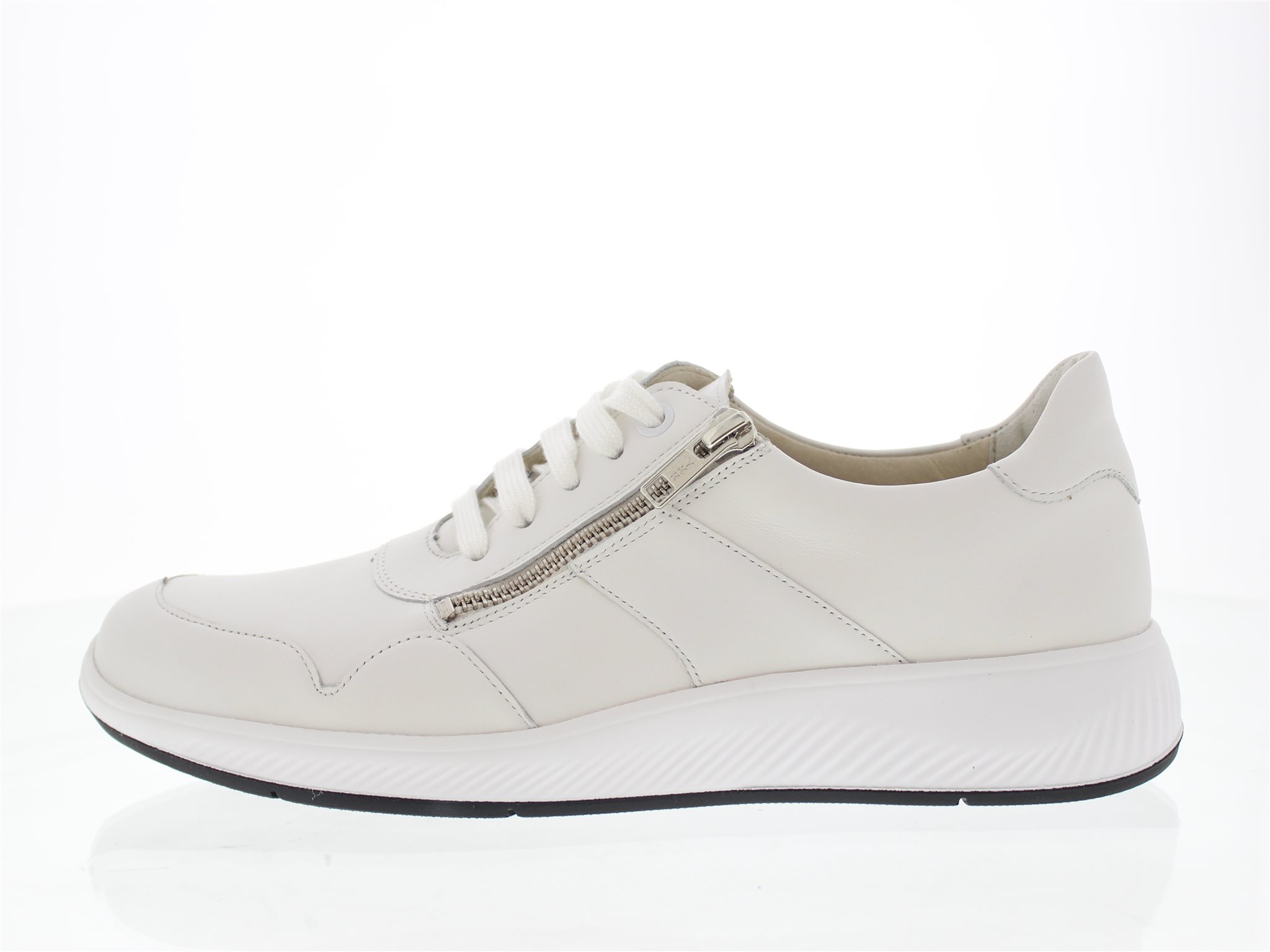 Solidus dames sneaker, model Halea F (smalle uitvoering). Voorzien van een flexibele loopzool met een licht afrollend effect en een groot draagvlak. De verlengde contrefort zorgt voor een goede hielstabiliteit. Dit samen zorgt voor een soepele looppatroon met een rechte afwikkeling waar je niet bij na hoeft te denken en volop kan genieten van stads- en wandel omgeving. En natuurlijk is de Halea uitgerust met de Solidus 3D dempende zool technologie voor extra schokabsorptie. Wit glad leer. Wijdte F, geschikt voor de smalle voet. Uitneembaar anatomisch gevormde voetbed. Hakhoogte 35mm. Hielheffing 20mm. Impregneren met Collonil Carbon Pro