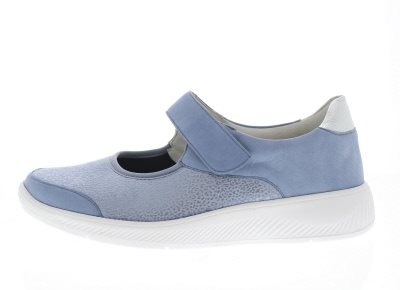 Solidus dames bandschoen, model Halea in een profylaxe uitvoering. Voorzien van een flexibele loopzool met een licht afrollend effect en een groot draagvlak. De verlengde contrefort zorgt voor een goede hielstabiliteit. Dit samen zorgt voor een soepele looppatroon met een rechte afwikkeling waar je niet bij na hoeft te denken en volop kan genieten van stads- en wandel omgeving. En natuurlijk is de Halea uitgerust met de Solidus 3D dempende zool technologie voor extra schokabsorptie. Blauw leer met een stretchvoorblad van neopreen/scuba. Dit voorkomt vervelende drukpunten bij diabetische, reumatische klachten en bij hamer/klauwtenen en bunions. Wijdte H, geschikt voor de iets bredere voet. Uitneembaar anatomisch gevormde voetbed. Hakhoogte 35mm. Hielheffing 20mm. Impregneren met Collonil Carbon Pro