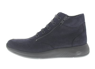 Solidus dames bootie, model Halea. Voorzien van een flexibele loopzool met een licht afrollend effect en een groot draagvlak. De verlengde contrefort zorgt voor een goede hielstabiliteit. Dit samen zorgt voor een soepele looppatroon met een rechte afwikkeling waar je niet bij na hoeft te denken en volop kan genieten van stads- en wandel omgeving. En natuurlijk is de Halea uitgerust met de Solidus 3D dempende zool technologie voor extra schokabsorptie. Donkerblauw nubuck. Wijdte H, geschikt voor de iets bredere voet. Uitneembaar anatomisch gevormde voetbed.