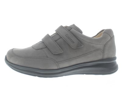 Ganter heren casual klittenbandschoen, model Harald uit de Vario lijn. Stevige schoen met een EXTRALIGHT lichtgewicht onderwerk die demping geeft, voor een soepele afwikkeling zorgt en een trapezium gevormde hak heeft voor meer draagvlak en enkelstabiliteit. Kalfsleren plantaardig gelooide binnenvoering. Grijs nubuck leer. Wijdte H, geschikt voor de normale tot iets bredere voet. Uitneembaar voetbed, goed te dragen als dagelijkse schoen.