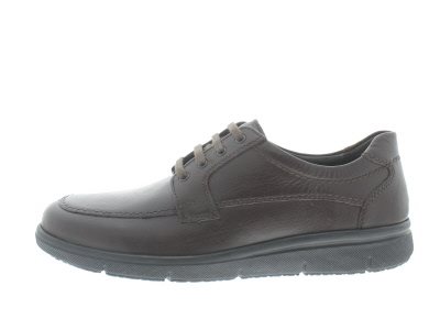 Solidus veterschoen voor heren, model Hardy, een speciale leest die in zowel een breedte H of K wordt gemaakt. Normale loopzool voor een voet met weinig tot geen afwikkelklachten. Bruin leer. Wijdte H, geschikt voor de iets bredere voet. Verwisselbaar voetbed voor eigen steunzolen. Hakhoogte 30mm. Hielheffing 16mm.