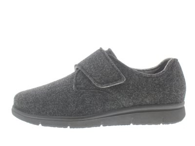 Solidus heren pantoffel, model Hardy, een speciale leest die in zowel een breedte H of K wordt gemaakt. Normale loopzool voor een voet met weinig tot geen afwikkelklachten. Antraciet wolvilt. Wijdte K, geschikt voor de brede voet. Verwisselbaar voetbed voor eigen steunzolen. Hakhoogte 30mm. Hielheffing 16mm.