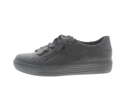 Veterschoen van het merk Solidus uitgevoerd in het zwart. Deze schoen heeft ook een rits aan de zijkant. Het voetbed is uitneembaar en deze schoen is gemaakt op een wijdte H. Hakhoogte is 30mm en de hieldrop is 16mm.