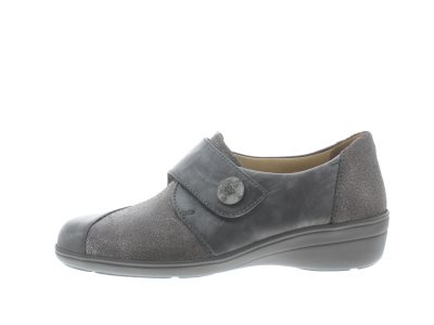 Deze mooie klittenband schoen is van het merk Solidus. Gemaakt op een wijdte F is deze schoen geschikt voor de smalle voet. Deze leren schoen is gemaakt in een mooie grijze kleur. Het voetbed is uitneembaar en de hakhoogte is 40 mm en de hieldrop is 30 mm.