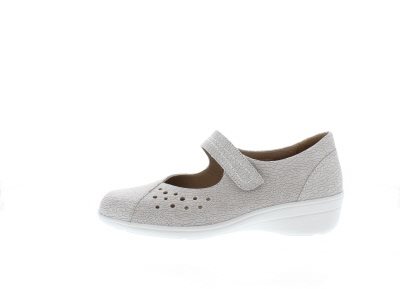 Solidus dames bandschoen, model Hedda, wijdte F voor de zeer smalle voet, taupe nubuckleer met print, uitneembaar voetbed.