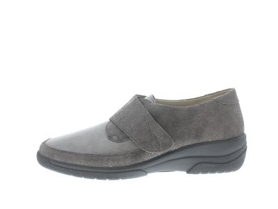 Solidus dames klittenbandschoen, model Hedda uit de Solicare Soft lijn, kleur grijs glad leer met grijs nubuck leer, wijdte J, geschikt voor de normale tot iets bredere voet, uitneembaar voetbed.