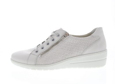 Solidus dames veterschoen op een sleehak, model Helia, grijs glad leer gecombineerd met nubuck met een fantasieprent op de flanken, wijdte H, geschikt voor de normale tot iets bredere voet.