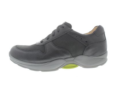 Ganter heren veterschoen, model Helios, wijdte H voor de normale tot brede voet, uitneembaar voetbed. Combinatie zwart glad- en nubuckleer. Hakhoogte 15 mm. Schoenen van Ganter hebben een afgeronde buitenzool die als vanzelf afwikkelt en de rugspieren traint terwijl je loopt. Lopen wordt hierdoor weer plezierig en een sterkere rug betekent minder rugpijn.