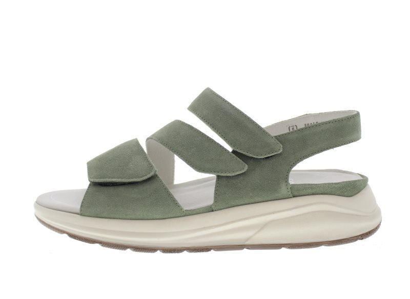 Solidus dames sandaal, model Hetty. Voorzien van een flexibele loopzool met een licht afrollend effect en een groot draagvlak met een redelijke torsiestijfheid. Ideaal voor het ondersteunen van de hiel en middenvoet. Groen suède. Wijdte H, geschikt voor de gemiddelde voet. Uitneembaar voetbed. Hakhoogte 40mm. Hielheffing 20mm.