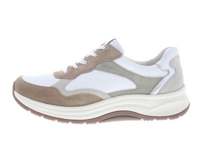 Ganter dames veterschoen, model High Flyer. Lichtgewicht vanwege de EXTRALIGHT afrollende loopzool, vervaardigd van schokabsorberende EVA. Dit zorgt ook voor een aangename demping met behoud van stabiliteit. Beige met wit leer en suède. Wijdte H, geschikt voor de iets bredere voet of normale voet dat om meer comfort vraagt. Uitneembaar voetbed.