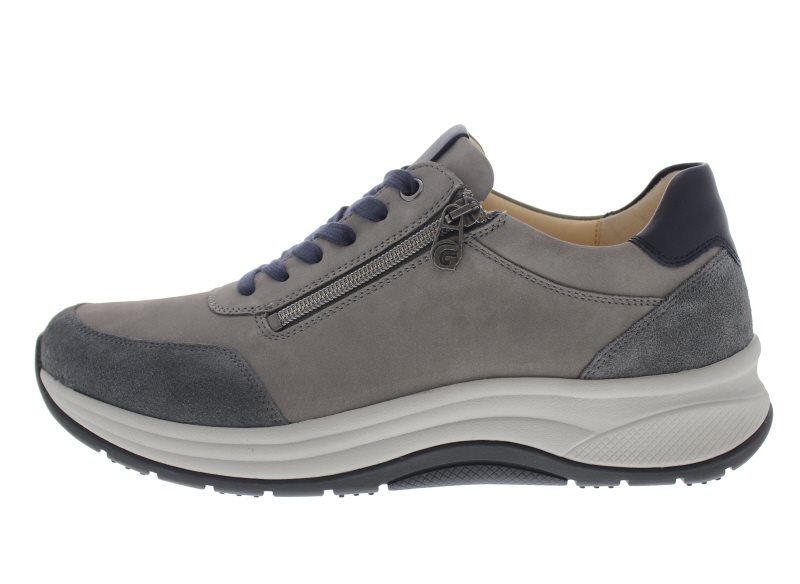 Ganter heren veterschoen, model High Flyer. Lichtgewicht vanwege de EXTRALIGHT afrollende loopzool, vervaardigd van schokabsorberende EVA. Deze zorgt ook voor een aangename demping met behoud van stabiliteit. Grijs nubuck en suède details. Laterale ritssluiting. Wijdte H, geschikt voor de iets bredere voet of normale voet dat om meer comfort vraagt. Uitneembaar voetbed.