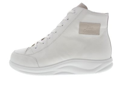 Finn Comfort dames bootie, model Holten uit de super comfortabele Finnamic afwikkel-lijn, ideaal bij het bestrijden van hielspoor/peesplaat en voorvoet gerelateerde klachten (metatarsalgie/morton), en het verbeteren van de lichaamshouding om eventuele rugklachten te verlichten. Wit leer. Valt tussen een wijdte H en K, geschikt voor de bredere voet. Voorzien van een mediale rits voor het aan- en uittrek gemak. Uitneembaar ecologisch en anatomisch gevormde voetbed.