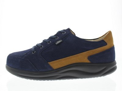 Finn Comfort heren veterschoen, model Huaraz uit de Finnamic afwikkel-lijn, met een mediale rits voor het instapgemak. Blauw nubuck leer. Valt als een volle H wijdte, geschikt voor de bredere voet. Uitneembaar ecologisch en anatomisch gevormde voetbed met een zachte toplaag, waar je enigszins je eigen voetafdruk in loopt. De Finnamic schoenen zijn zeer geschikt voor het ontlasten van hiel en voorvoet klachten, ontspannen het lichaam en activeren de spieren tijdens het lopen en geeft de rug tevens een rechtere houding. Een complete schoen die helpt en en ondersteuning biedt bij het bestrijden en verminderen van een heleboel voetklachten en houdingsproblemen.