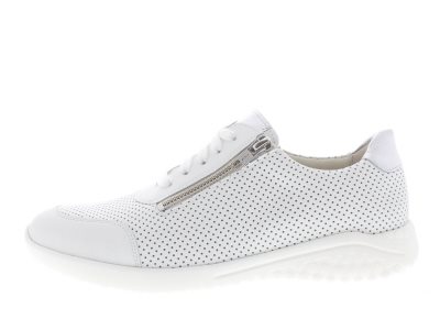 Solidus flexibele dames sneaker voor de voeten die weinig beperking dulden, model Hyle, voorzien van een rits voor het instapgemak, zeer licht van gewicht met een heerlijk dempende EVA rubberen loopzool, en stevig rondom de enkel vanwege een toegespitste hielkap. wit geperforeerd leer voor extra transpiratie afvoer, wijdte H, geschikt voor de normale tot iets bredere voet, uitneembaar voetbed.