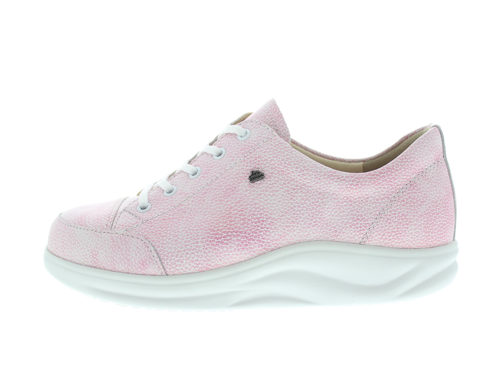 Finn Comfort dames veterschoen, model Ikebukuro uit de Finnamic afwikkel lijn. Schoenen uit deze lijn zijn zeer geschikt bij het ontlasten en verlichten van hiel en voorvoet gerelateerde klachten, en zorgt tevens voor een rechtere rug houding en ondersteuning bij rugklachten. Roze leer. Valt als een wijdte H, geschikt voor de iets bredere voet. Uitneembaar ecologisch en anatomisch gevormde voetbed. Hakhoogte 32mm. Hielheffing 12mm. Impregneren met Collonil Carbon Pro