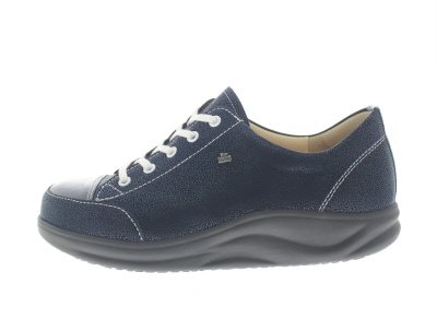 Finn Comfort dames veterschoen, model Ikebukuro uit de Finnamic afwikkel lijn. Schoenen uit deze lijn zijn zeer geschikt bij het ontlasten en verlichten van hiel en voorvoet gerelateerde klachten, en zorgt tevens voor een rechtere rug houding en ondersteuning bij rugklachten. Blauw leer. Valt als een wijdte H, geschikt voor de iets bredere voet. Uitneembaar ecologisch en anatomisch gevormde voetbed. Hakhoogte 32mm. Hielheffing 12mm. Impregneren met Collonil Carbon Pro