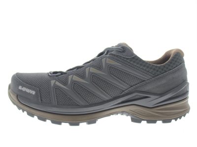 Lage stadswandelschoen met Lowa Monowrap zoolopbouw en de Soft Stabilizer, voelt als een lichtgewicht sportschoen. Geschikt voor alle ondergronden. Grijs geweven materiaal met suède details en grijze accenten. Met Gore-Tex.