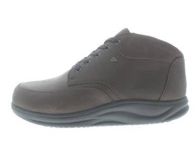 Finn Comfort heren enkelhoge bootie, model Irun uit de Finnamic afwikkel-lijn. Donkerbruin glad leer. Dik gepolsterde rand rondom de enkel voor stabiliteit. Valt als een wijdte K, geschikt voor de brede voet, uitneembaar ecologisch en anatomisch gevormde voetbed met een zachte toplaag, waar je enigszins je eigen voetafdruk in vormt. De Finnamic schoenen zijn zeer geschikt voor het ontlasten van hiel en voorvoet klachten, ontspannen het lichaam en activeren de spieren tijdens het lopen en geeft de rug tevens een rechtere houding. Een complete schoen die helpt en en ondersteuning biedt bij het bestrijden en verminderen van een heleboel houdings-en voetklachten.