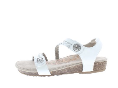 Deze fraaie sandaal van Aetrex is gemaakt met een afwikkeling in de zool verlicht bij onder andere hielspoorklachten. Ook hebben de sandalen een anti pronatie blok wat ervoor zorgt dat de enkels niet naar binnen knikken. Hiermee verlicht je o.a de knieen, heupen en rug.Deze mooie sandaal is in een witte tint gemaakt en in de loopzool zit kurk verwerkt.