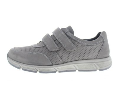 Solidus heren klittenbandschoen, model Kai, een bijzondere schoen die op meerdere breedtes wordt gemaakt. Dit model heeft een redelijk soepele afwikkelzool met een breed draagvlak, voor een goede grondcontact. Twee klittenbanden door een passant om de gewenste stevigheid te bepalen. Zeer geschikt om aan te trekken bij eventuele hand-beperkingen door bijvoorbeeld reuma of artrose. Bruingrijs geperforeerd nubuck. Wijdte K, geschikt voor de bredere voet. Uitneembaar voetbed. Hakhoogte 30mm. Hielheffing 14mm.