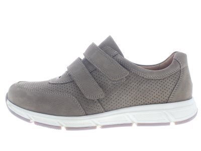 Solidus heren casual sneaker, model Kai (K), een bijzondere schoen die op meerdere breedtes wordt gemaakt. Dit model heeft een redelijk soepele afwikkelzool met een breed draagvlak, voor een goede grondcontact. Twee klittenbanden door een passant om de gewenste stevigheid te bepalen. Zeer geschikt om aan te trekken bij eventuele hand-beperkingen door bijvoorbeeld reuma of artrose. Beige nubuck leer. Wijdte K, geschikt voor de bredere voet. Uitneembaar voetbed. Hakhoogte 30mm. Hielheffing 14mm.