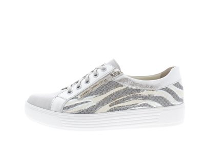 Deze mooie sportieve dames veterschoen is van het merk Solidus. Uitgevoerd in wijdte K. Deze leren schoen is voorzien van een leuke zebra print. Het voetbed is uitneembaar en de hakhoogte is 25 mm en de hieldrop is 15 mm.