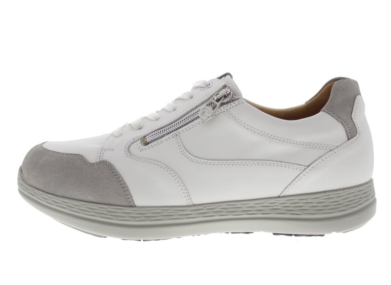 Ganter heren casual sneaker, model KarlLudwig uit de Sensitiv lijn. Voorzien van een functionele rits voor het aan- en uittrek gemak. Wit leer met suède details. Plantaardig gelooide binnenvoering van zacht velours zonder voelbare stiknaden en volledig gepolsterd. Stevige afwikkelzool, zeer geschikt ter ondersteuning bij diabetische, neuropatische en reumatische klachten. Wijdte K-L, geschikt voor de brede tot zeer brede voet. Uitneembaar voetbed, goed te dragen als dagelijkse schoen. Dit model heeft een extra uitneembare opvulzool dat van een wijdte K breedtemaat overgaat naar een wijdte L voor meer comfort. Hakhoogte 44mm. Hielheffing 18mm.