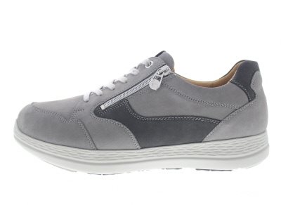 Ganter heren casual sneaker, model KarlLudwig uit de Sensitiv lijn, voorzien van een functionele rits voor het aan- en uittrek gemak. Grijs nubuck. Plantaardig gelooide binnenvoering van zacht velours zonder voelbare stiknaden en volledig gepolsterd. Stevige afwikkelzool, zeer geschikt ter ondersteuning bij diabetische, neuropatische en reumatische klachten. Wijdte K-L, geschikt voor de brede tot zeer brede voet. Uitneembaar voetbed, goed te dragen als dagelijkse schoen. Dit model heeft een extra uitneembare opvulzool dat van een wijdte K breedtemaat overgaat naar een wijdte L voor meer comfort. Hakhoogte 44mm. Hielheffing 18mm.