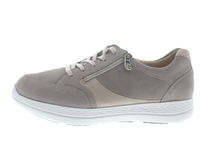 Ganter heren casual sneaker, model KarlLudwig uit de Sensitiv lijn, met een EXTRA verstijfde zool ter ondersteuning bij een hallux rigidus/limitus en artrose. Functionele rits voor het aan- en uittrek gemak. Taupe nubuck leer. Plantaardig gelooide binnenvoering van zacht velours zonder voelbare stiknaden en volledig gepolsterd. Stevige afwikkelzool, zeer geschikt ter ondersteuning bij diabetische, neuropatische en reumatische klachten. Wijdte K-L, geschikt voor de brede tot zeer brede voet. Uitneembaar voetbed, goed te dragen als dagelijkse schoen. Dit model heeft een extra uitneembare opvulzool dat van een wijdte K breedtemaat overgaat naar een wijdte L voor meer comfort.
