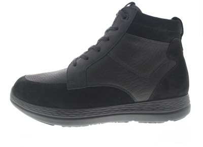 Ganter heren bootie, model KarlLudwig uit de Sensitiv lijn, voorzien van een functionele rits aan de mediale zijde voor het aan- en uittrek gemak. Zwart leer met nubuck. Plantaardig gelooide binnenvoering van zacht velours zonder voelbare stiknaden en volledig gepolsterd. Stevige afwikkelzool, zeer geschikt ter ondersteuning bij diabetische, neuropatische en reumatische klachten. Wijdte K-L, geschikt voor de brede tot zeer brede voet. Uitneembaar voetbed, goed te dragen als dagelijkse schoen. Dit model heeft een extra uitneembare opvulzool dat van een wijdte K breedtemaat overgaat naar een wijdte L voor meer comfort. Hakhoogte 44mm. Hielheffing 18mm.