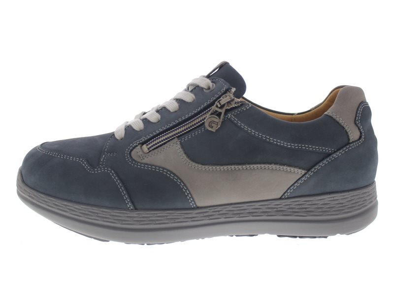 Ganter heren casual sneaker, model KarlLudwig uit de Sensitiv lijn. Voorzien van een functionele rits voor het aan- en uittrek gemak. Blauw/grijs nubuck. Plantaardig gelooide binnenvoering van zacht velours zonder voelbare stiknaden en volledig gepolsterd. Stevige afwikkelzool, zeer geschikt ter ondersteuning bij diabetische, neuropatische en reumatische klachten. Wijdte K-L, geschikt voor de brede tot zeer brede voet. Uitneembaar voetbed, goed te dragen als dagelijkse schoen. Dit model heeft een extra uitneembare opvulzool dat van een wijdte K breedtemaat overgaat naar een wijdte L voor meer comfort. Hakhoogte 44mm. Hielheffing 18mm.