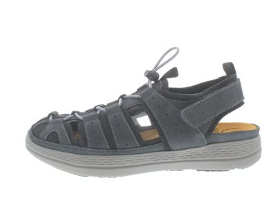 Ganter sportieve heren sandaal met een dichte neus op een KarlLudwig loopzool uit de Ganter Sensitiv lijn, blauw nubuck leer met synthetische elementen en binnenvoering, geen voelbare stiknaden en goede afwikkeling van de zool, daardoor super geschikt ter ondersteuning van gevoelige voeten, wijdte K-L, geschikt voor de brede tot zeer brede voet, uitneembaar voetbed, goed te dragen als dagelijkse zomerschoen.