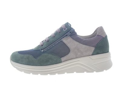 Solidus dames sneaker, model Karma. Dit is een profylaxe uitvoering zonder voelbare stiknaden, geschikt bij diabetische en reumatische voetklachten. Uitgerust met een stevige afwikkelzool en een behoorlijke torsiestijfheid. Het brede draagvlak in combinatie met de sterke contrefort zorgen voor veel stabiliteit. Ideale schoen bij een hallux valgus vanwege een royalere balwijdte en toegeknepen hielslot, terwijl de hielheffing je voetwortel centreert. Complete casual schoen waar je makkelijk lange afstanden mee maakt voor je stedelijke wandeling, winkelen of bij het doen van je boodschappen. Groen met taupe suède gecombineerd met mesh. Wijdte K, geschikt voor de brede voet. De rits is functioneel. Uitneembaar voetbed.
