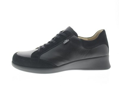 Finn Comfort dames veterschoen, model Kastela uit de City lijn. Deze schoen heeft een rits aan de mediale zijde. Voorzien van een flexibele zool met een breed draagvlak rond de hiel voor meer support. Zwart leer met nubuck. Valt als een wijdte H, geschikt voor de normale tot iets bredere voet. Uitneembaar ecologisch en anatomisch gevormde voetbed. Finn Comfort inlegzolen zijn los verkrijgbaar. Hakhoogte 40mm. Hielheffing 28mm.