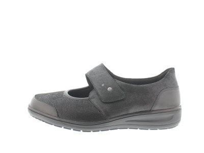 Solidus dames klittenbandschoen, model Kate uit de Solicare Soft lijn, kleur zwart glad leer gecombineerd met zwart stretch leer, wijdte K, geschikt voor de brede voet, uitneembaar voetbed.