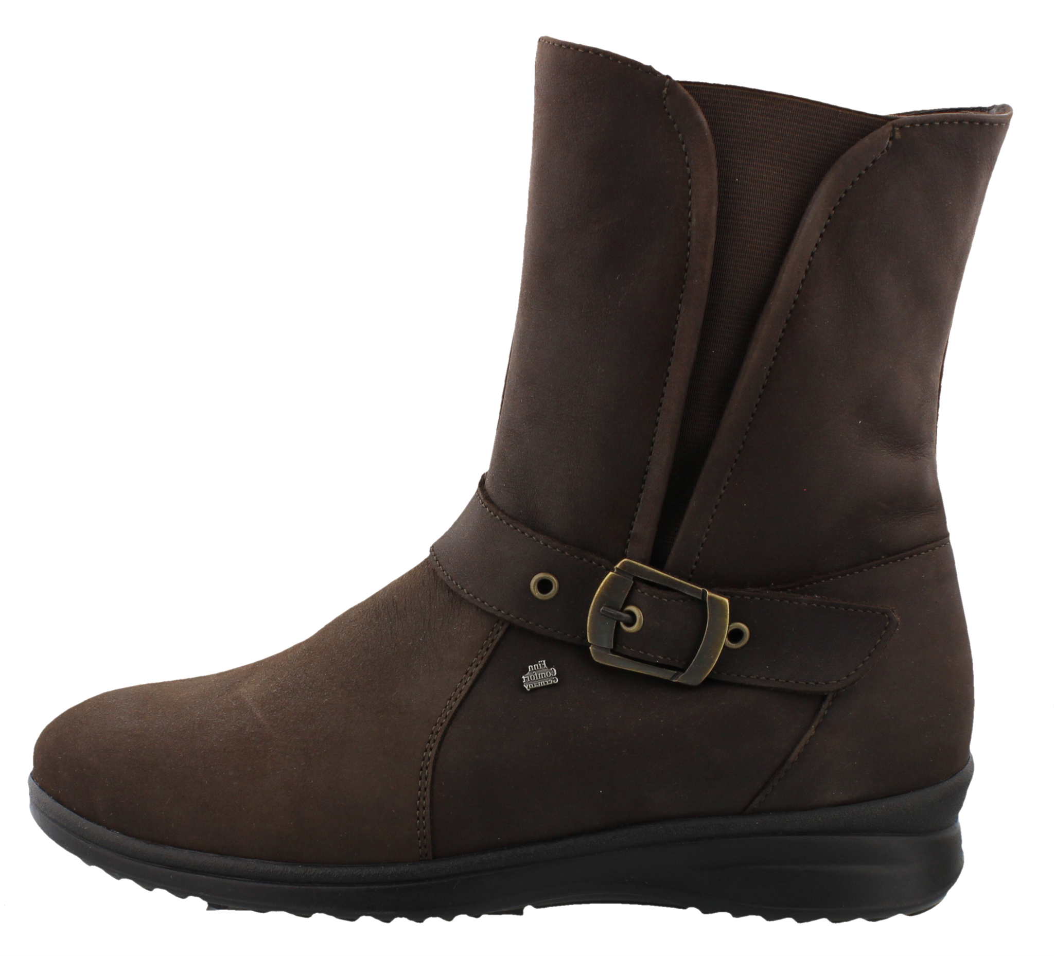 Finn Comfort dames kuitlaars met rits en verstelbare wreefband, model Kaunas, bruin nubuckleer, geschikt voor de brede voet, uitneembaar voetbed. Hakhoogte 18 mm.
