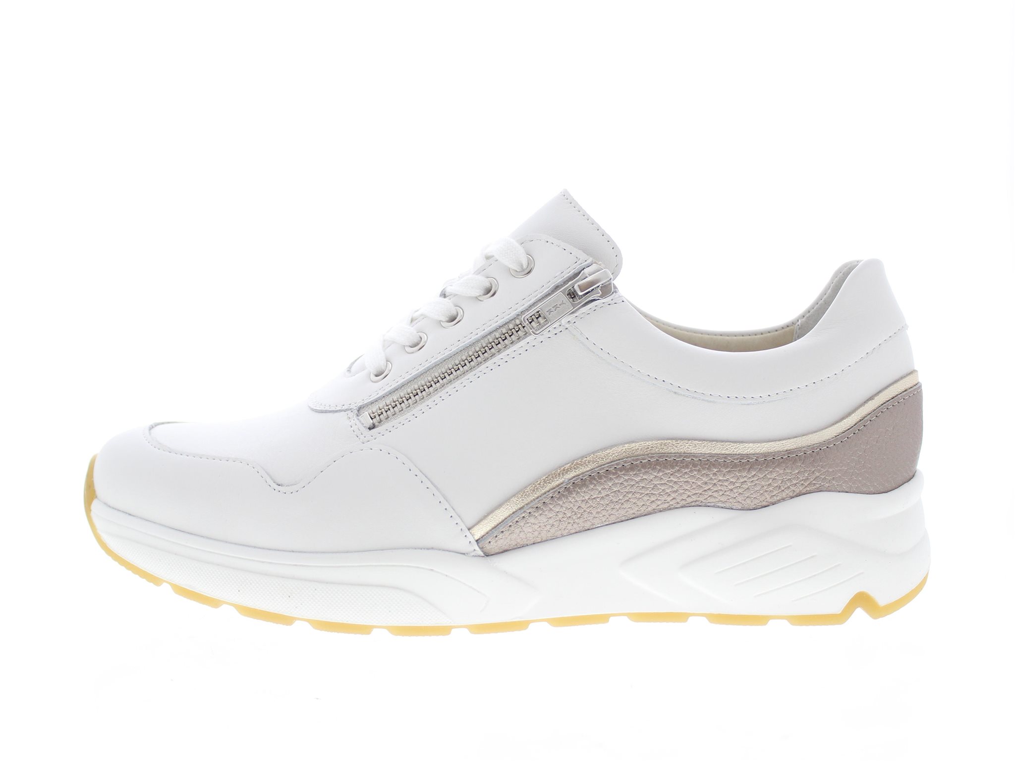 Solidus casual dames sneaker met een ‘chunky’ afwikkelzool, model Kea. Vrij minimalistische rijg molière die een tijdloze uitstraling garandeert. Voorzien van een functionele rits voor het aan- en uittrek gemak. Wit leer. Wijdte K, geschikt voor de brede voet. Uitneembaar voetbed.