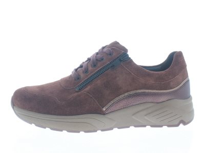 Solidus moderne dames sneaker op een ‘chunky’ afwikkelzool, model Kea met een rits voor het instapgemak. Roestrood suède rijgmolière met metallic details. Wijdte K, geschikt voor de brede voet. De stevige afwikkelzool verlicht voorvoet gerelateerde klachten door de soepele afroldynamiek. Super comfortabel vanwege de 3D demping van buitenzool, tussenlaag en dempende elementen van het uitneembare voetbed. Deze schoen laat je niet alleen maar lekker lopen, maar hiermee complimenteer je al je casual looks. Hakhoogte 38mm. Hielheffing 18mm.