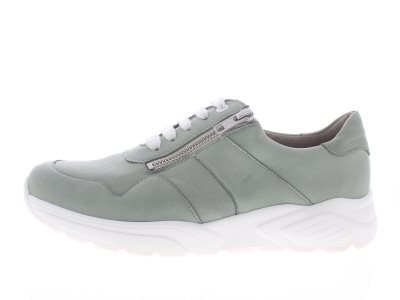 Solidus profylaxe dames sneaker met een ‘chunky’ afwikkelzool en een rits voor het instapgemak, model Kea uit de Solicare Soft lijn. Met een ‘stretch’ meeverend voorblad voor een extra zachte en voelbaar stiknadenvrije teenbox, perfect voor het ontlasten van pijnlijke voeten bij diabetische en reumatische klachten en bunions. Jade groen glad leer gecombineerd met neopreen. Wijdte K, geschikt voor de brede voet. Uitneembaar voetbed.