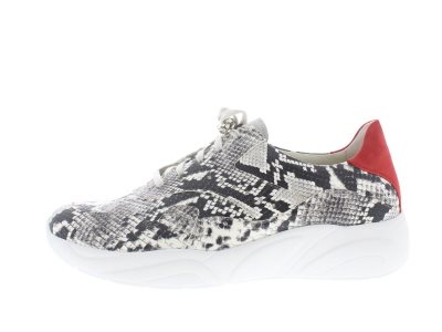 Solidus moderne dames sneaker met een ‘chunky’ afwikkelzool, model Kea, all over animalprint met rode details lederen rijgmoliere, wijdte K, geschikt voor de brede en volle voet, uitneembaar voetbed.