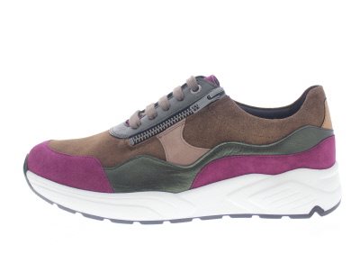 Solidus casual dames sneaker met een ‘chunky’ afwikkelzool, model Kea. Vrij minimalistische rijg molière die een tijdloze uitstraling garandeert,. Voorzien van een functionele rits voor het aan- en uittrek gemak. Paars met bruin suède. Wijdte K, geschikt voor de brede voet. Uitneembaar voetbed. Hakhoogte 38mm. Hielheffing 18mm. Impregneren met Collonil Carbon Pro, zo zijn ze beschermt en blijven ze langer mooi.